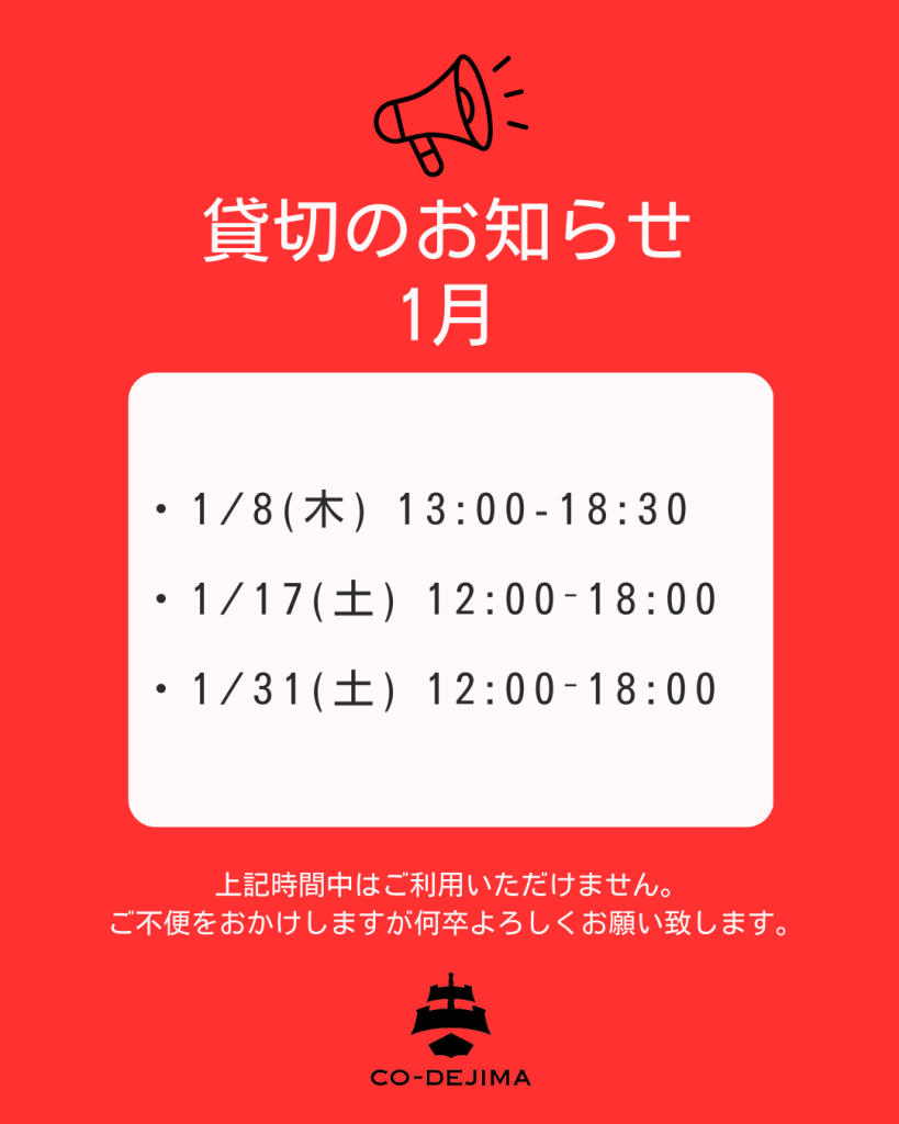 1月のイベント日程を公開!【12/27更新】 – CO-DEJIMA