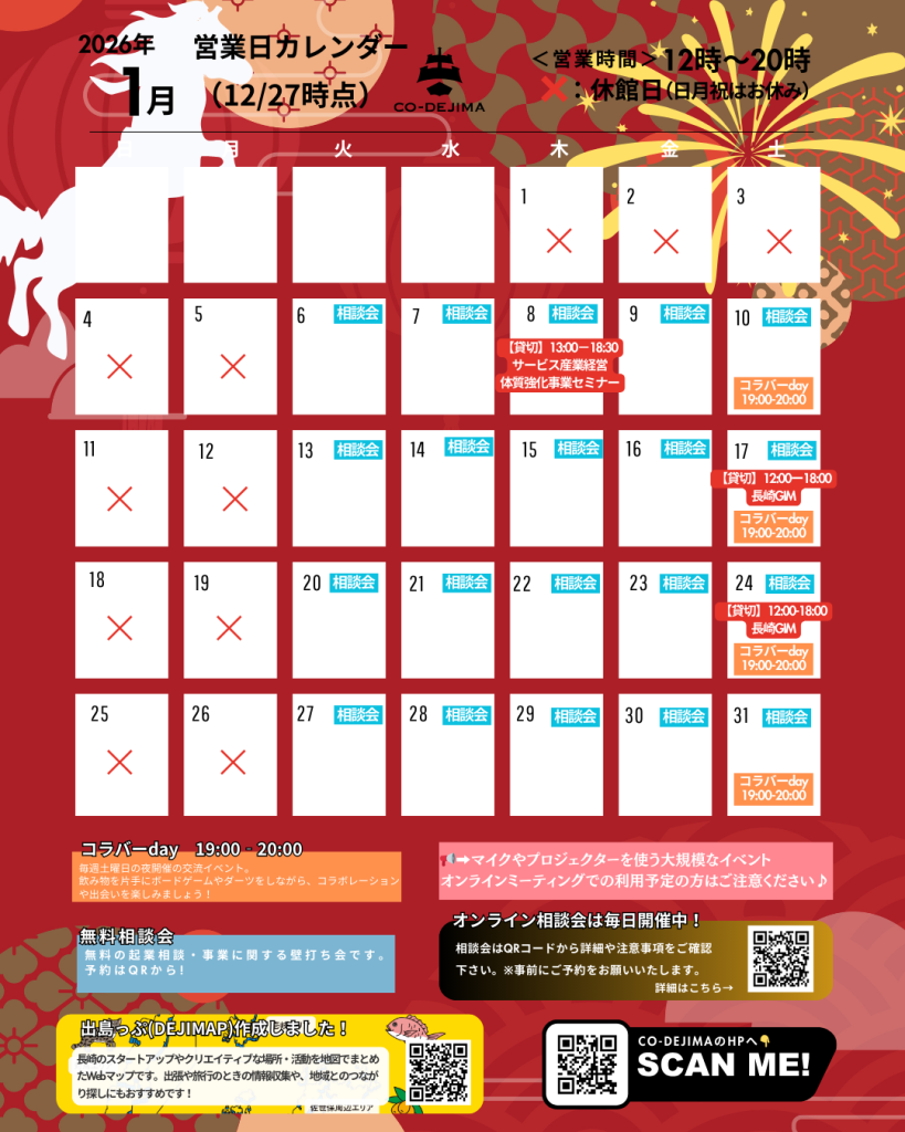 場所:CO-DEJIMA(〒850-0862 長崎県長崎市出島町2-11号出島交流会館2F)